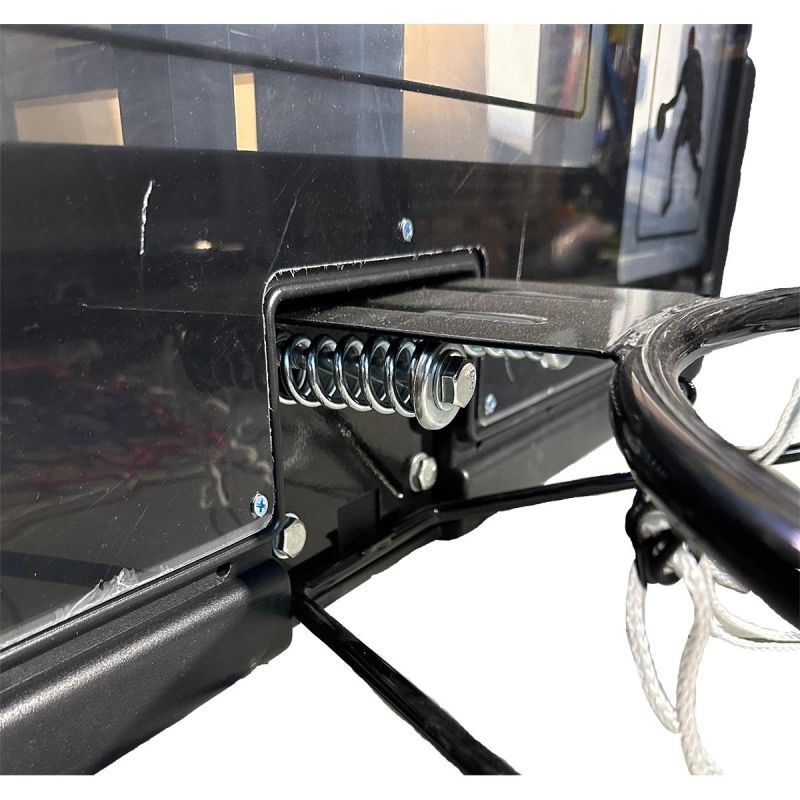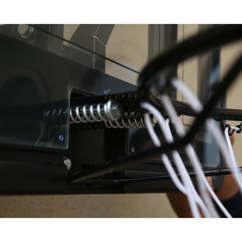 The basketball hoop is additionally equipped with shock-absorbing springs – a tilting mechanism that guarantees safe play and high comfort and quality of play. The springs effectively absorb impact energy when throwing the ball into the basket, reducing the stress caused by powerful shots.
