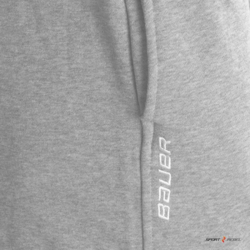 Bauer sweatpants, perfect for wearing during training and on weekdays. They have an elastic waistband and a drawstring. Two side pockets on the seam. Fleece-lined legs with cuffs. The Bauer logo is embroidered on the front right side. Material: 80% cotton, 20% polyester, 300 g fleece inside.