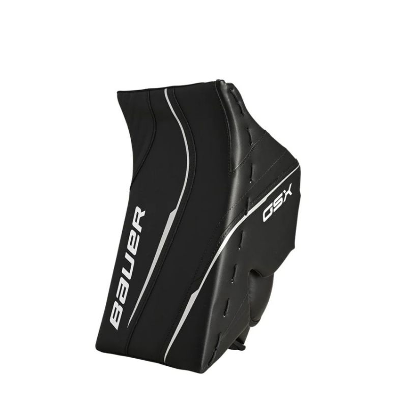 The Bauer GSX '23 Jr. GSX Blocker will help you learn how to quickly clear the puck from behind the net. Greater range of motion, improved protection, and lightweight materials allow goaltenders to learn proper blocker mechanics. Key Features: Extended Range of Motion (ROM): The blocker cuff is designed for comfortable articulation and wrist control. It allows the goaltender to easily position the blocker to be ready for a save. Reinforced Side Edge: The side edge has been structurally reinforced to provide internal protection and better retain its shape over time. Lightweight, Balanced Design: The blocker is 5% lighter than its predecessor and designed for stable and balanced use.