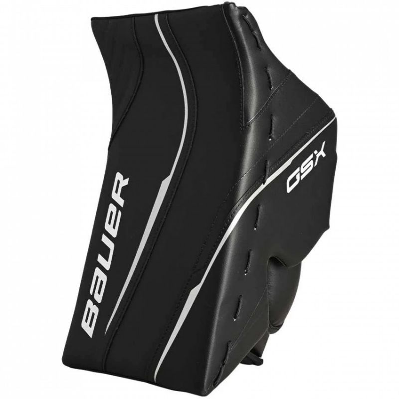 The Bauer GSX '23 Sr. GSX Blocker will help you learn how to quickly clear the puck from behind the net. Greater range of motion, improved protection, and lightweight materials allow goaltenders to learn proper blocker mechanics. Key Features: Extended Range of Motion (ROM): The blocker cuff is designed for comfortable articulation and wrist control. It allows the goaltender to easily position the blocker to be ready for a save. Reinforced Side Edge: The side edge has been structurally reinforced to provide internal protection and better retain its shape over time. Lightweight, Balanced Design: The blocker is 5% lighter than its predecessor and designed for stable and balanced use.