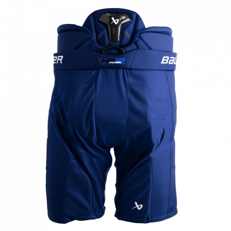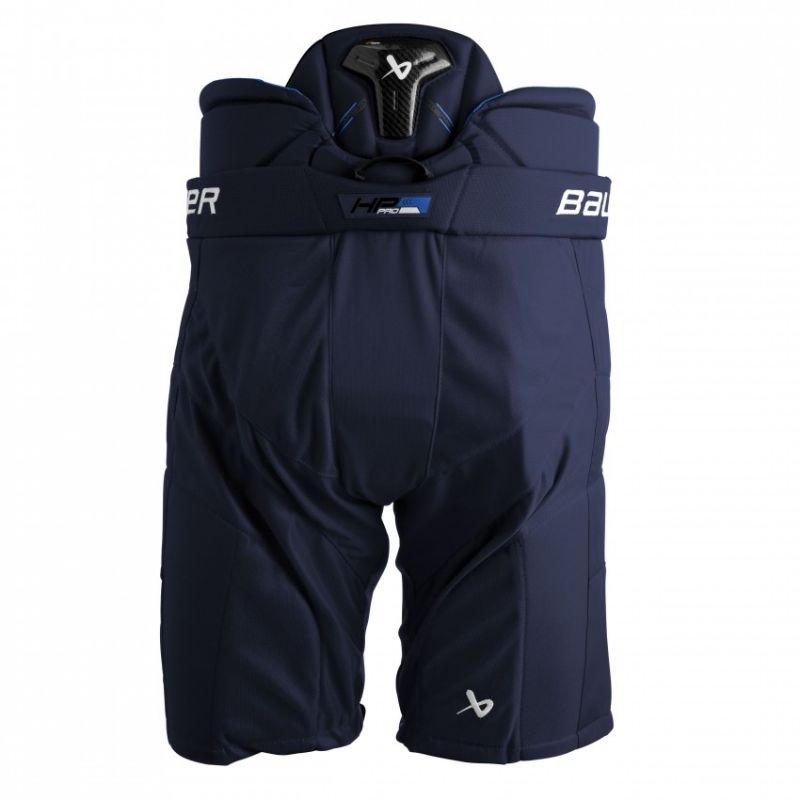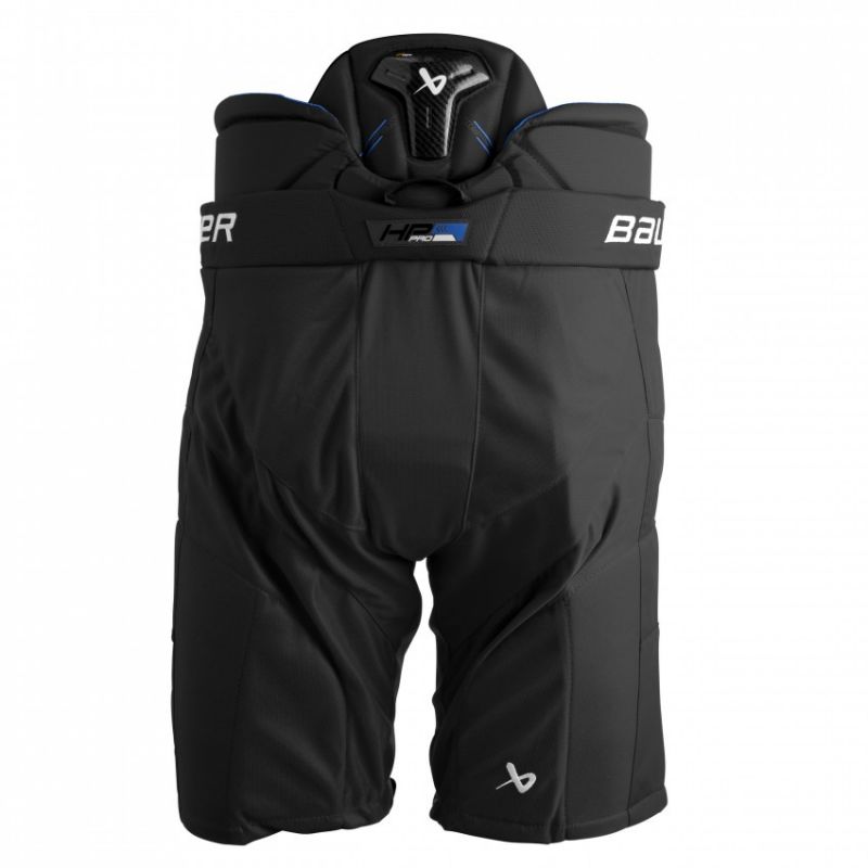 Bauer HP Pro Sr. Hockey Pants: The faster you play, the more protection you need. These pants are designed to provide top players with the protection and comfort they need to win on the ice. Key Features: Independent Spine Protection with CURV Composite: Composite material and independent spine protection adapt to your game, providing protection in key areas and helping you stay agile on the ice. DC TECH Foam Inserts: Provides protection when blocking shots and against accidental impacts thanks to the addition of foam on the hips. 840D Nylon Material: Made of water-resistant nylon fabric that's designed to withstand heavy use for many seasons. HD Foam Insert: Lightweight foam provides additional hip protection in high-impact areas. These pants are the perfect choice for any hockey player looking to combine the highest level of protection with comfort. TECHNICAL SPECIFICATIONS Intended Use Ice Hockey, Field Player, Elite SR Material Mix of durable 840D nylon and stretch zones Protection Spine Protection: Independent spine protection made of CURV Composite material Kidney Protection: One-piece kidney protection with lightweight HD foam insert Fit: Classic fit Hip Protection: One-piece hip protection with DC TECH foam insert Thigh Protection: Molded PE and HD foam, removable for personalization Waistband Waistband with side buckle Adjustment Length adjustment +1'' Padding THERMOMAX + padding