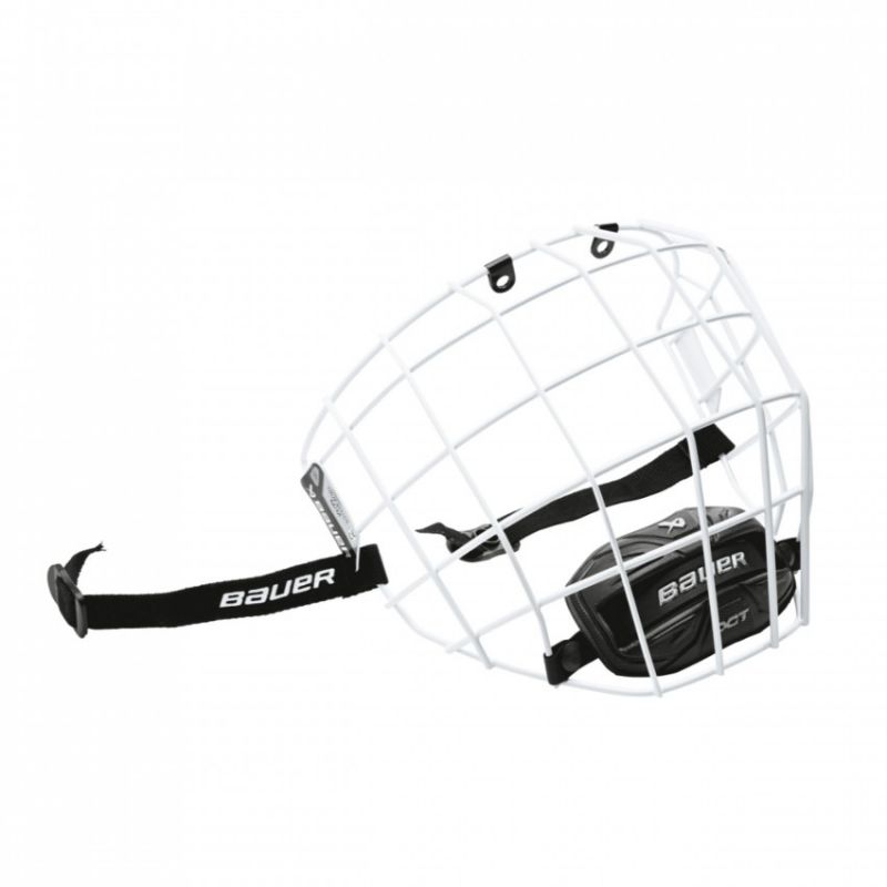 Bauer II Grid. The Bauer II Grid helps you stay focused on the puck and focused on the game. It's made of stainless steel and features a comfortable, floating chin rest. It also features True Vision technology for enhanced visibility. With the Bauer II Grid, players can see more of their surroundings. Currently available in black, white, and silver, True Vision - Strategically angled bars provide a wider field of vision to see more of your surroundings. Floating Chin Rest - Enhanced comfort and a better fit.