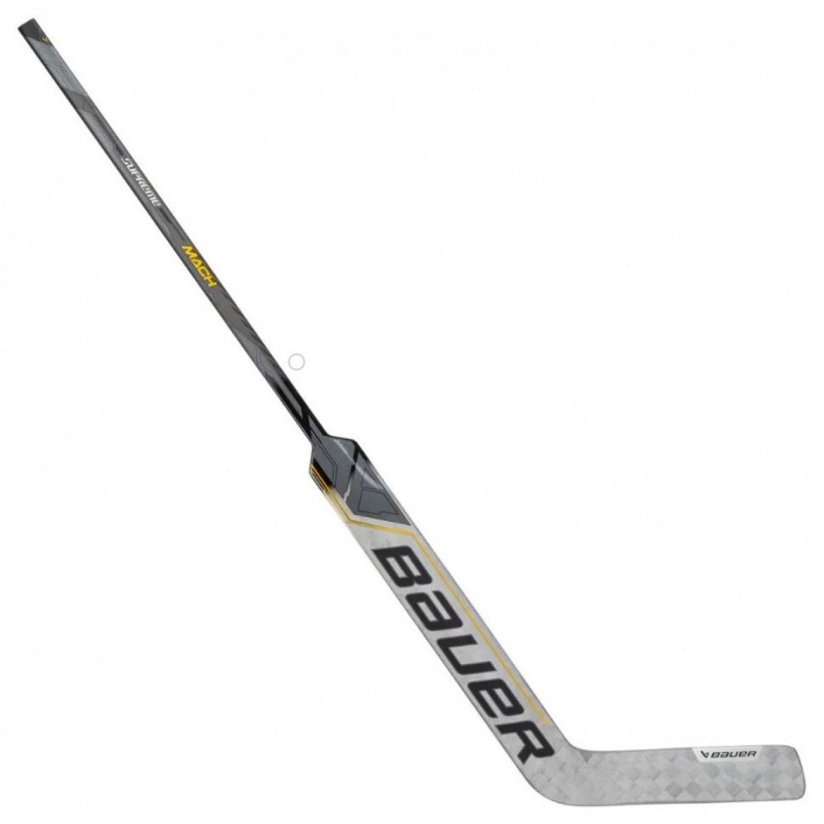 Bauer Mach 25" Sr. Goalie Stick Push the boundaries of stick technology with the MACH goalie stick. Never before has there been such a performance level indicator with so many elite features to help you play your best. Control: Griptac shaft and ERGOBRIDGE core and blade construction provide enhanced torsional control when playing the puck or directing shots. Durability: UD Carbon Shaft provides professional-grade shaft durability due to puck deformation. Expandcel Bridge core provides durable protection against puck impacts. Balance: Full TEXTREME blade construction with ACL technology provides excellent balance. TECHNICAL SPECIFICATIONS: Intended Use: Ice Hockey, Goalie, Senior. Elite Technology: UD Carbon Shaft, ERGOBRIDGE Construction: Composite Blade: Full TEXTREME with ACL technology Weight: -