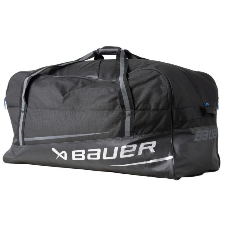 Bauer Premium Carry Sr. Hockey Bag The Bauer Premium Carry Sr. Hockey Bag is an excellent choice for hockey players looking for a durable and functional bag. This bag will carry all the gear they need for practice or a match. Made of high-quality materials, it provides long-lasting durability for heavy use. Key Features: Material: 600D polyester and RIPSTOP, resistant to abrasion and damage. Compartments: Large main compartment with a simple zipper and two separate end pockets. Additional Pocket: External water bottle pocket for quick access. Ventilation: Dual premium ventilation panels allow air circulation, helping keep gear fresh. Straps: Durable straps with a belt buckle ensure comfortable carrying. Dimensions: 88.9 cm (length) x 50.8 cm (width) x 45.72 cm (height). This bag is perfect for hockey players who need a durable and spacious bag for their sports equipment.