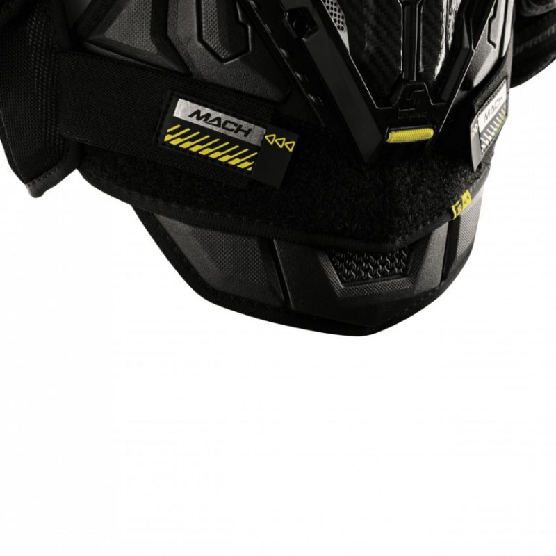 Designed for Maximum Confidence Our latest line of SUPREME MACH shin guards helps you maintain mobility while offering the most protection in our entire protective gear collection. With more flex points, added padding, and complete head-to-toe coverage, you can confidently face every challenge every time you step on the ice. Bauer Supreme Mach Junior Hockey Shoulder Pads: Protect your upper body like never before. SUPREME MACH shoulder pads provide full-body protection with more flex points for added mobility, so you can stay safe on the ice while performing at your best. Key Features: Movable Active Protection: Strong, low-profile protection that mimics the natural movements of your arms and hands. CURV Composite: Lightweight composite materials in the sternum protect against accidental cuts without restricting mobility. HYPERLITE Foam: Lightweight, full-body coverage helps you stay fast. THERMOCORE Zero Lining: Keep your gear fresh all match long with the ultimate sweat and odor management.