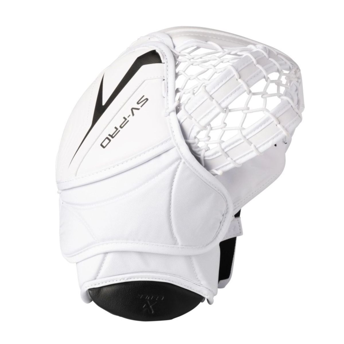 The Bauer SV-Pro Int is a professional-grade catcher for goaltenders who demand maximum performance in every situation. Combining the best features of the SUPREME and VAPOR series, this model offers exceptional comfort, instant closure, and design inspiration straight from the Vapor FLYLITE. With an improved closure system and a deep, double T-Trap pocket, every save becomes a highlight on the ice. Key Features: A Closure That Stops Everything: The improved catcher design provides a quick, secure, and easy hand closure, allowing you to quickly catch pucks and stop the action—without unnecessary bounces. More Reach, More Possibilities: The double T-Trap, inspired by the VAPOR FLYLITE catcher, increases catching efficiency and allows you to control the puck even in the most demanding situations. Confidence and comfort in every action: The DEFENSE CLOUD TECH foam-lined palm effectively absorbs impacts, while the CONNEKT+ Grip material inside the glove provides excellent feel and control. Advanced technologies: Break angle: full hand closure Pocket: new, deep double T-Trap Cuff: reinforced CURV® Back cuff: Free-Flex | AEROLITE Hand protection: polycarbonate impact shield Back of hand: fully adjustable Hand padding: CONNEKT+ Grip The Bauer SV-Pro Int is a catcher for goalkeepers who not only stop every puck, but also dominate the goal crease. Complete control, comfort, and professional quality – ready for the highest level of competition.