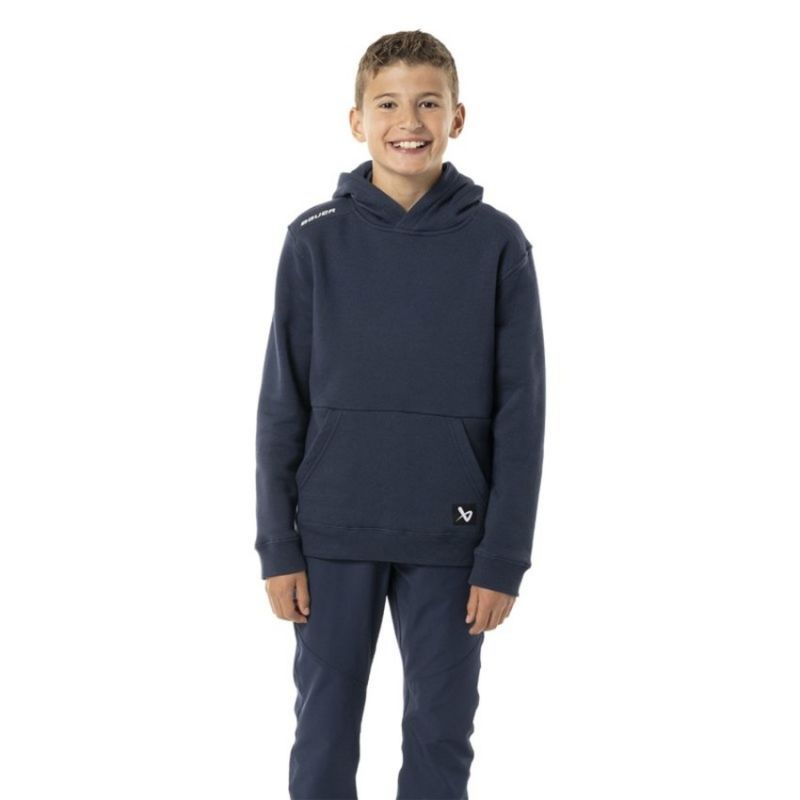Bauer Team Ultimate Kids' Hoodie: A classic kangaroo hoodie, perfect for young athletes and active kids. Made with high-quality materials, it provides comfort, durability, and breathability. It features a practical front pocket, a hood, and aesthetic details. This is a great choice for stylish and functional kids. Material: 85% cotton / 15% polyester. Tapered hockey cut. Graphic Bauer logo on the front. Lined hood. Kangaroo pocket.