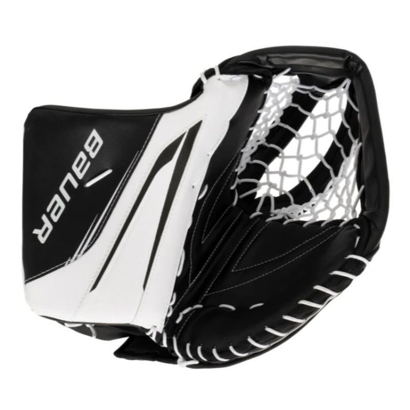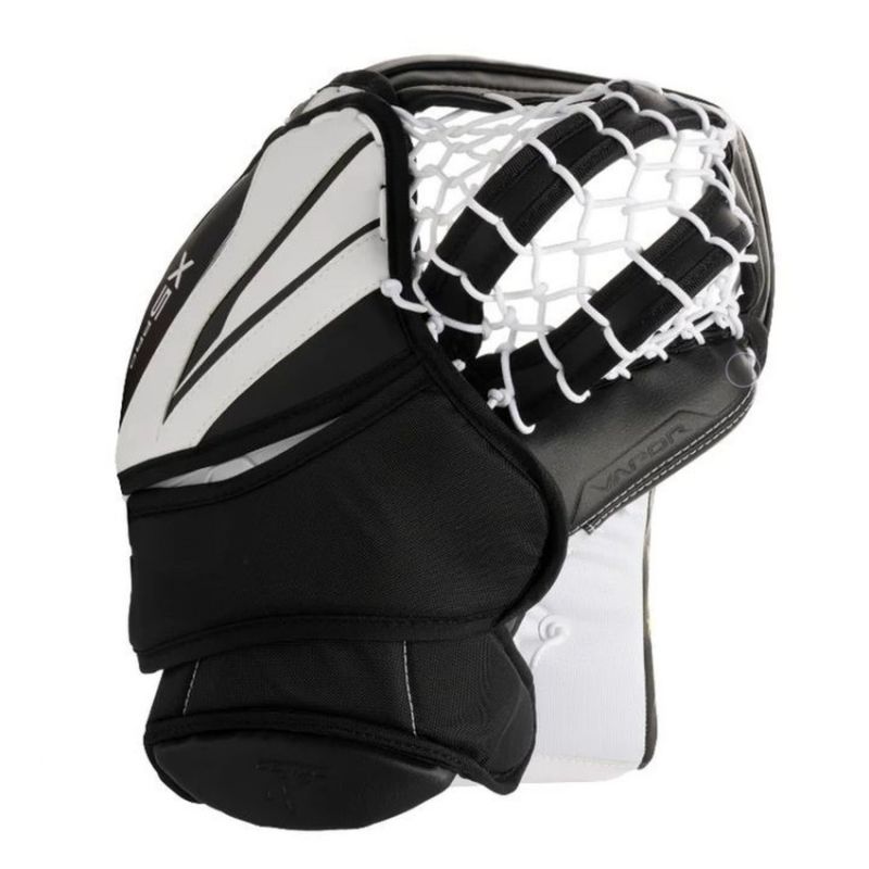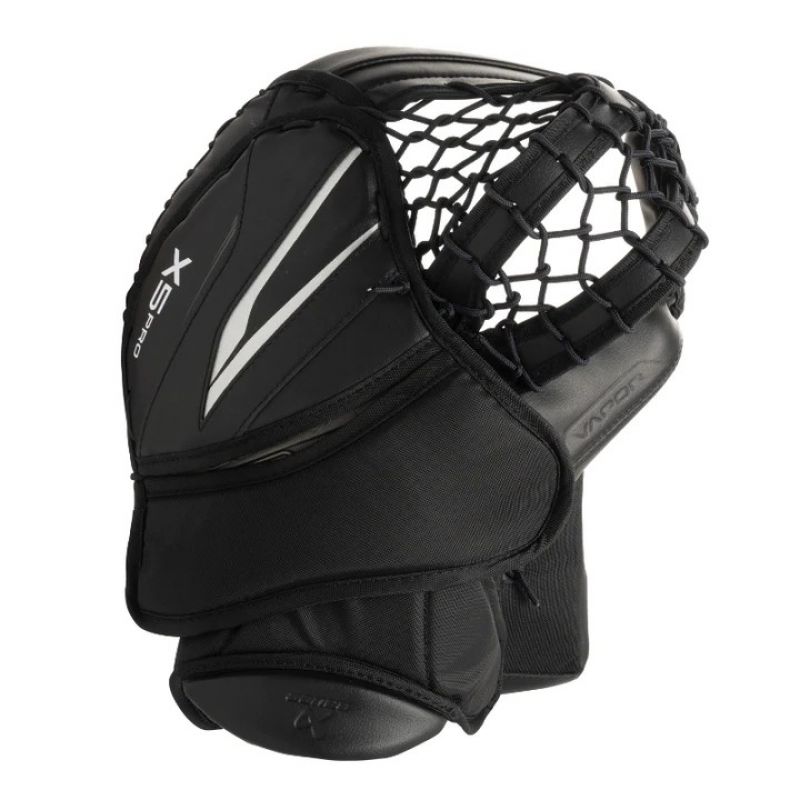 Designed for Performance: Feel comfortable playing hockey while staying comfortable in your gear. The M5 PRO protective gear family draws on the elite MACH series and adds an extra layer of comfort technology. The Bauer Vapor X5 Pro Sr. Catcher is engineered with advanced technology to provide unmatched grip, closure, and control in the net. Key Features: Range and Coverage: CATCHLITE Material: The palm and T-TRAP material allow for easy opening and closing, ensuring no puck bounces after a save. Protection: CATCH-GRIP+ Lining: An interior material that provides enhanced control in the grip position from the fingers to the thumb, creating a glove ideally suited for goaltenders who grip this way. Range of Motion: The new ROM (range of motion) wrist strap provides comfortable wrist movement and control. Technical Specifications: Wrist Strap: Range of Motion (ROM) Strap Palm Lining: CATCHGRIP+ Palm Protection: Rebound Control Foam Thumb: Neoprene lever strap for full opening Material: Catchlite T-Trap Palm Cuff: CURV reinforced cuff Pocket: Double construction