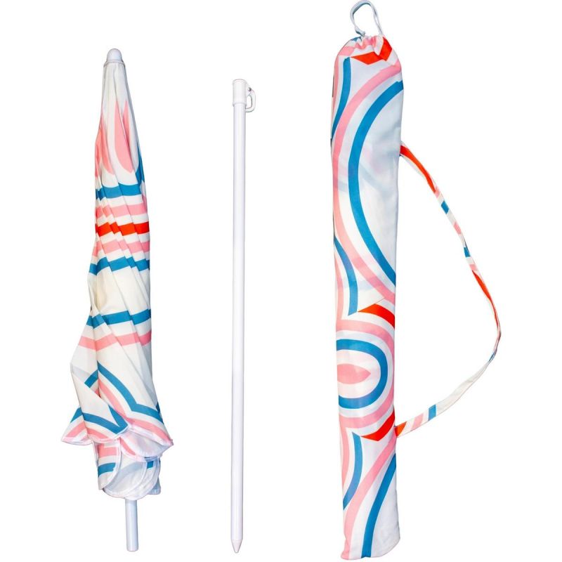 Discover the BEACH AND GARDEN UMBRELLA 160CM BLUE PINK STRAP made of durable material and holiday colors.