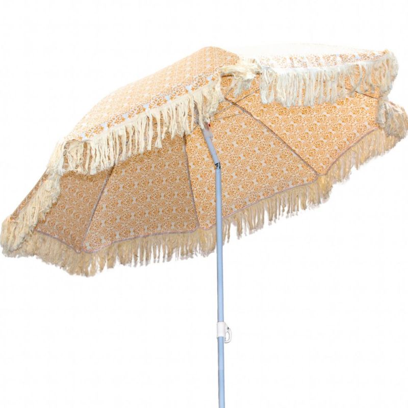 This beach and garden umbrella with fringes is perfect for the beach, in the garden, or on a terrace or balcony. Its compact size and adjustable design allow for easy adjustment to various locations and situations. No matter where you spend your time, it will always provide stylish sun protection.