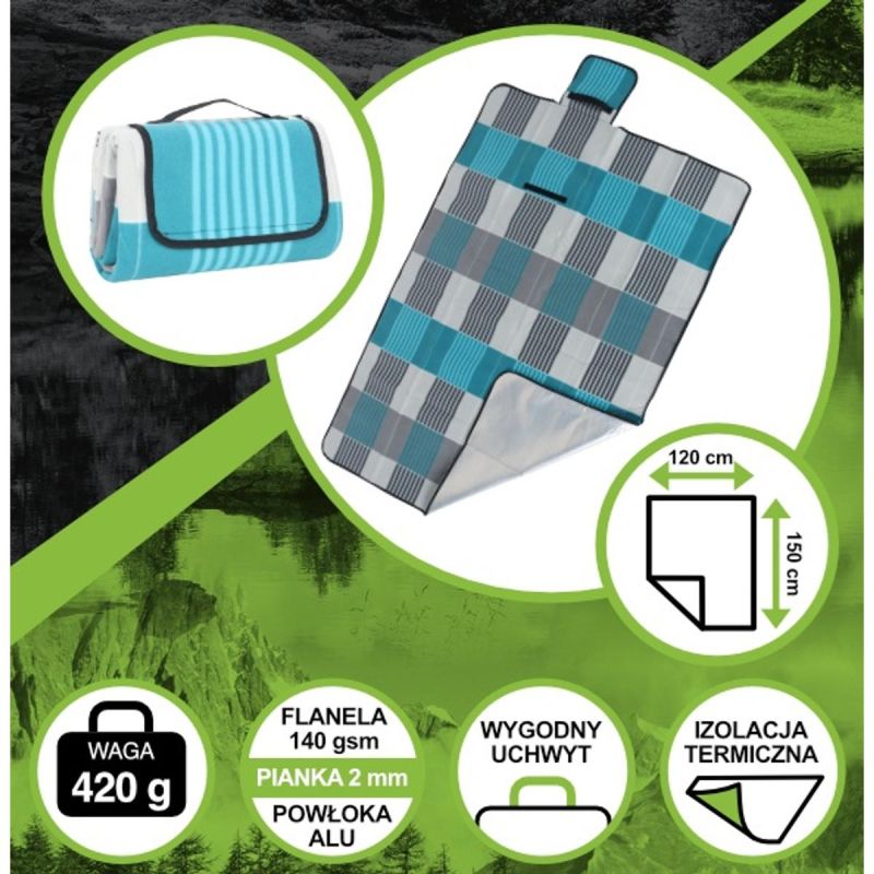 BEACH AND PICNIC BLANKET 150x120CM WITH ALU COATING ENERO CAMP is a practical and stylish blanket, the perfect companion for summer trips and family gatherings in the bosom of nature.