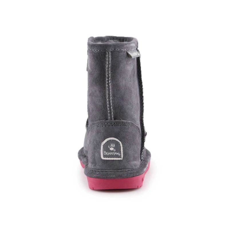 - The unique Bearpaw Emma Toddler Zipper 608TZ-903 Charcoal Pomberry snow boots are made of leather and fastened with a zipper.