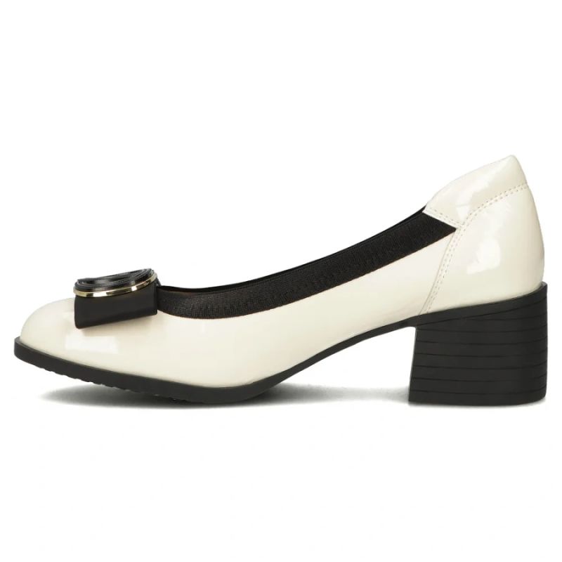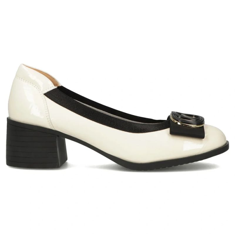 Shoes set on a comfortable heel and decorated with an original ornament will fit almost all women's styles.