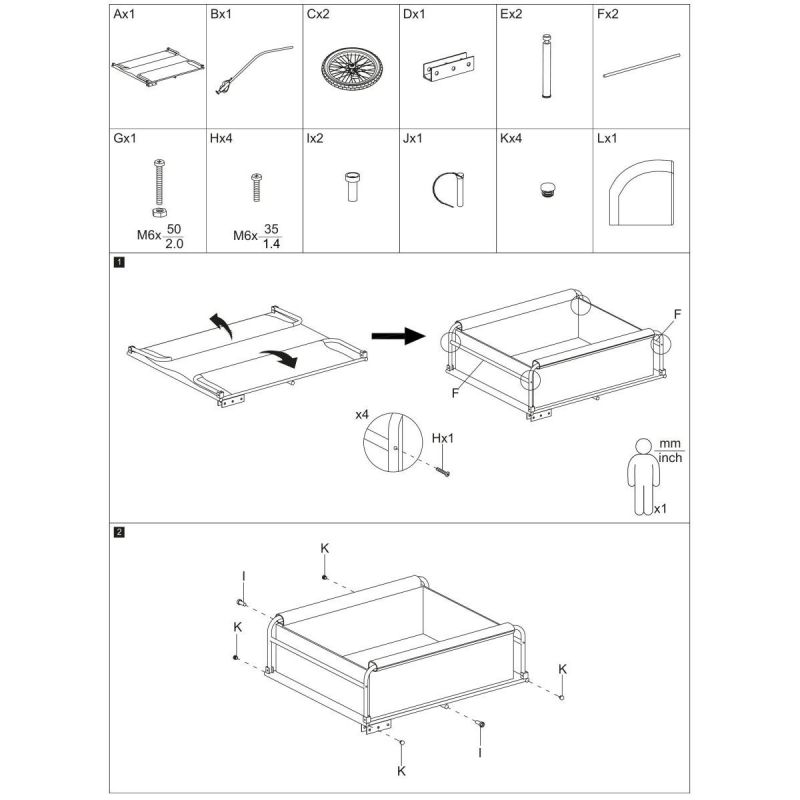 - Trailer dimensions (loading area) approx.: 70 x 56 x 30 cm (L x W x H)