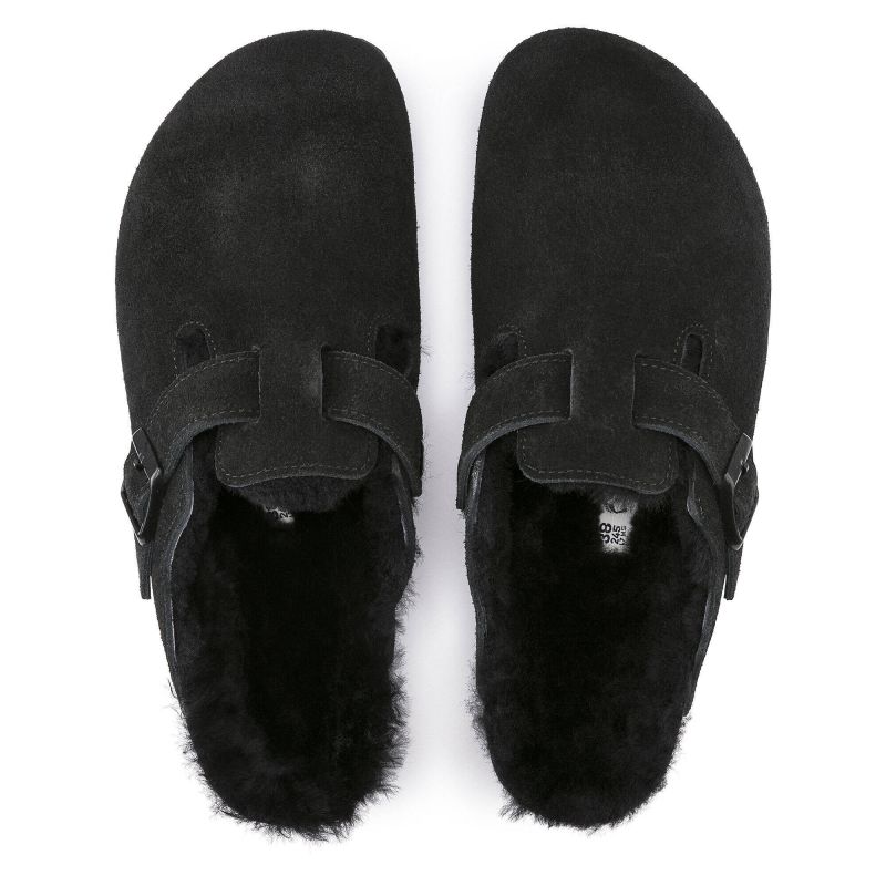 Birkenstock Boston Shearling Black Women's Wool Insulated Clogs in Suede Leather Narrow (0259883)