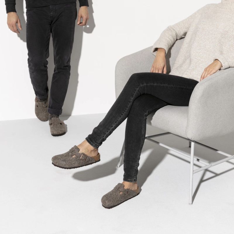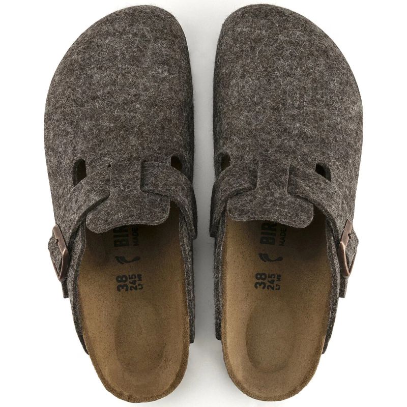 The Boston clog, a classic among BIRKENSTOCK models, features an upper made of soft, high-quality wool felt. An integrated strap with a sturdy metal buckle allows the clog to be individually adjusted to fit any foot.
