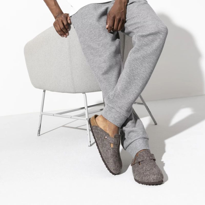 The Boston clog, a classic among BIRKENSTOCK models, features an upper made of soft, high-quality wool felt. An integrated strap with a sturdy metal buckle allows the clog to be individually adjusted to fit every foot.