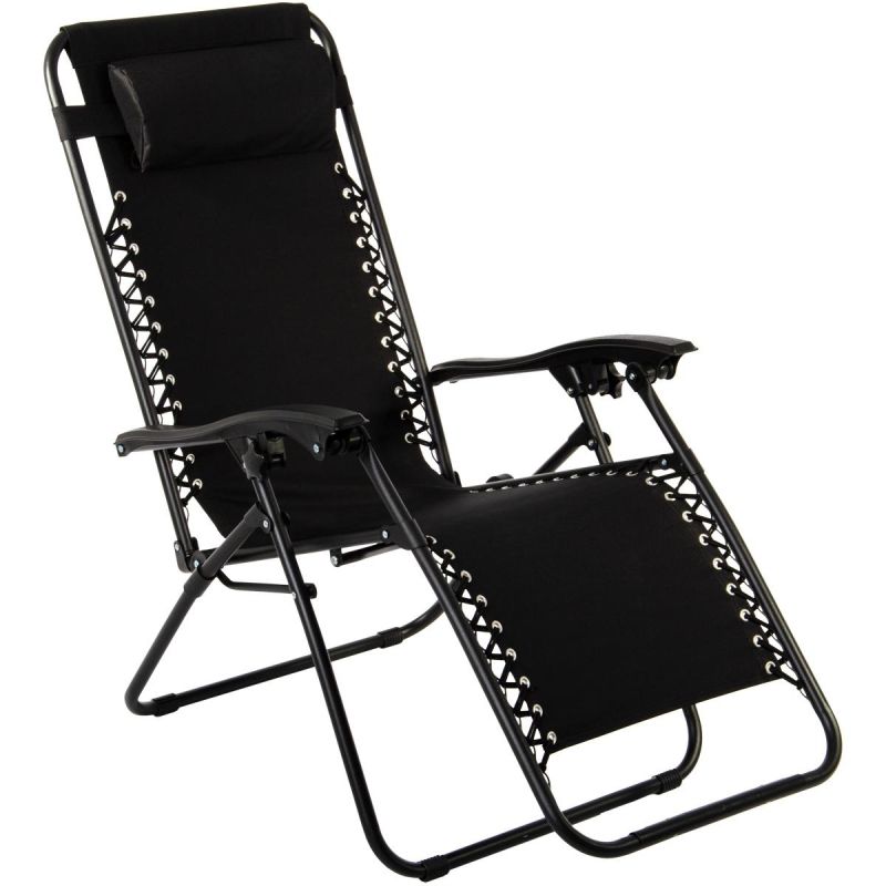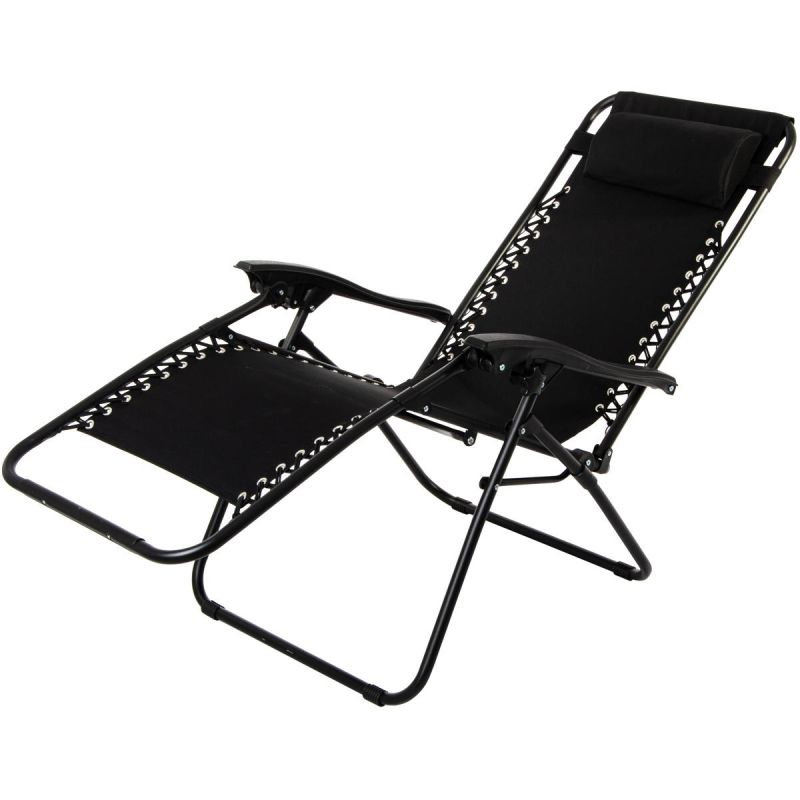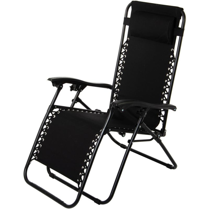 BLISS BLACK FOLDABLE GARDEN DECK CHAIR WITH HEADREST, MULTIFUNCTIONAL