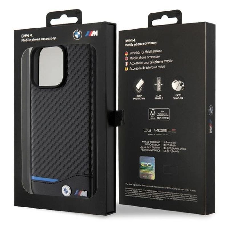 BMW Leather Carbon case for iPhone 15 Pro Max - black