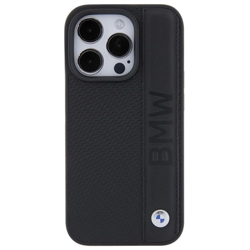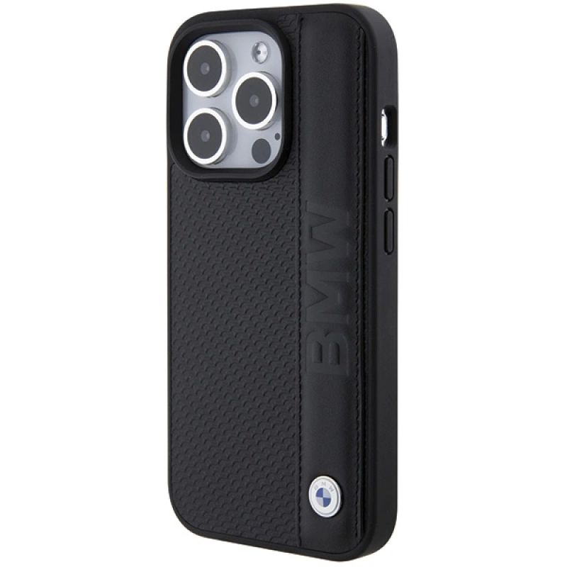 BMW Leather Textured & Stripe iPhone 15 Pro Max Case - Black