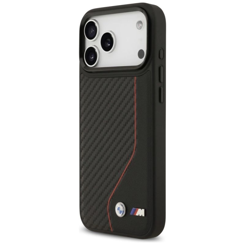 Collection M Carbon Line & MagSafe Logo Type Protective case Material Eco-leather / PU Carbon / PC / TPU Color Black / Red Compatibility iPhone 17 Pro Max| Name | Details |