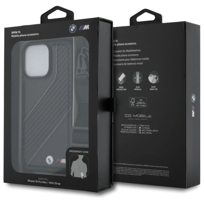 7. BMW M Edition Carbon Stripe & Strap Case for iPhone 16 Pro Max - Black