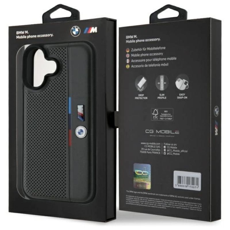 5. BMW M Perforated Tricolor Detail Line iPhone 16 Case - Dark Gray