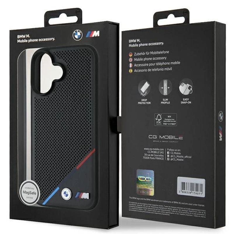 BMW M Perforated Tricolor Line MagSafe Case for iPhone 16 Plus - Black