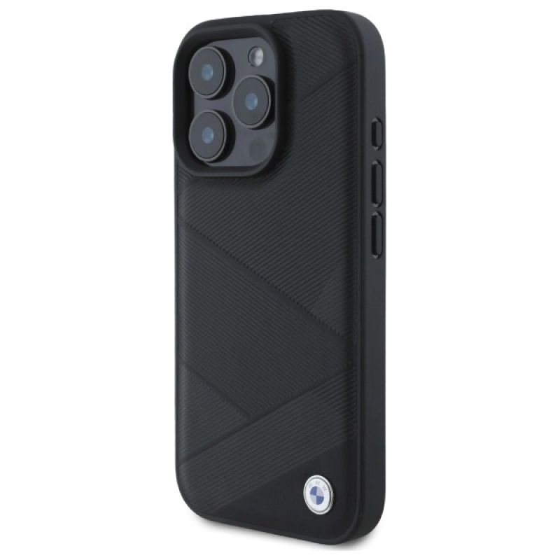 BMW Sign Leather Crossing Lines Pattern iPhone 16 Pro Max Case - Black