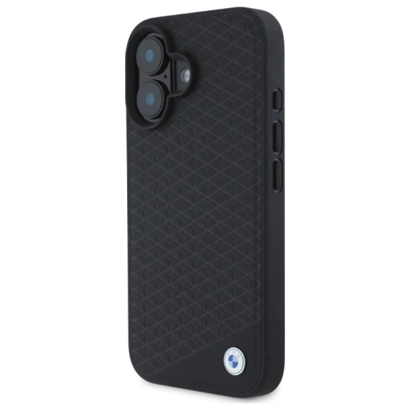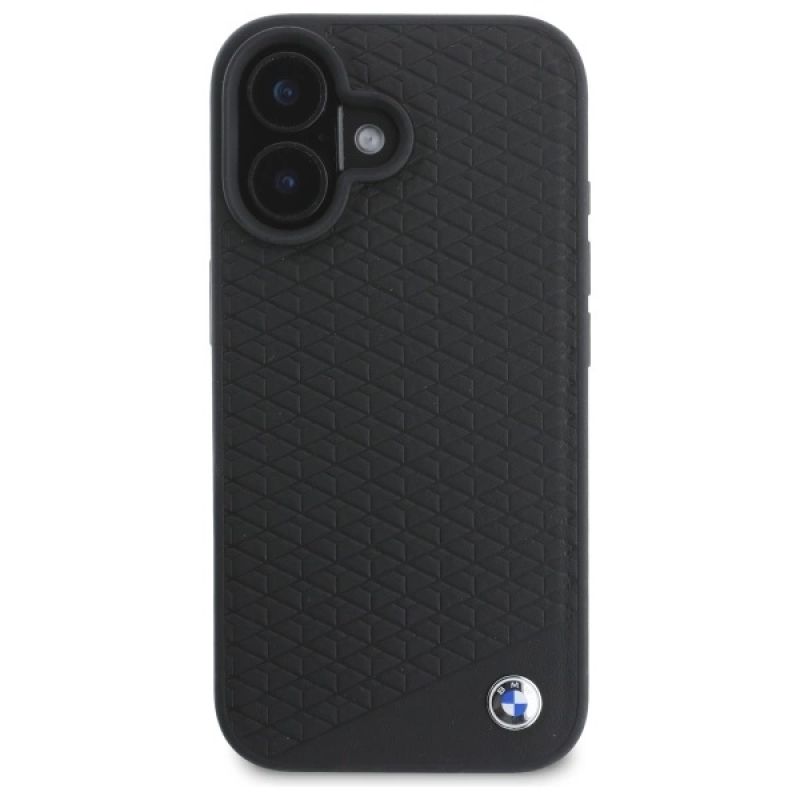 BMW Sign Leather Diamond Metal Logo MagSafe iPhone 16 Case - Black