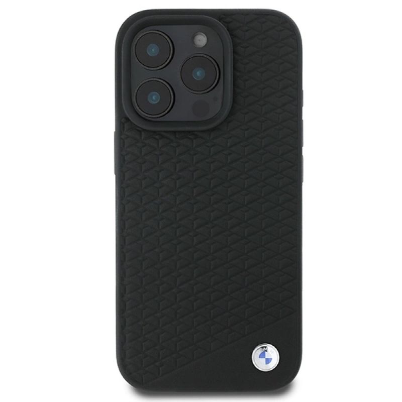 BMW Signature Leather Diamond Metal Logo MagSafe Case for iPhone 16 Pro Max - Black