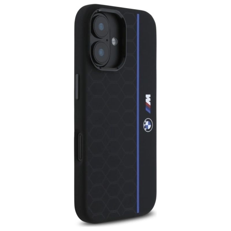 7. BMW Silicone Hexagon Blue Line MagSafe iPhone 16 Case - Black