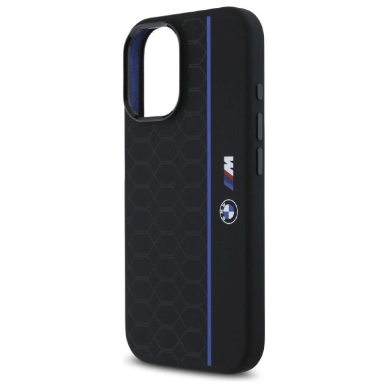 5. BMW Silicone Hexagon Blue Line MagSafe iPhone 16 Case - Black