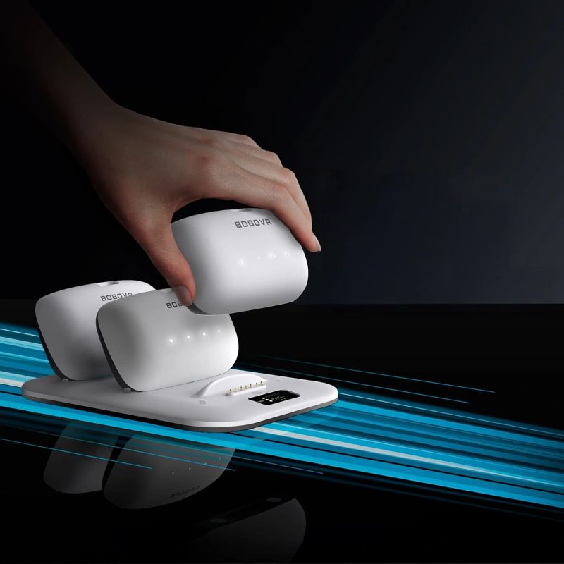 The BoboVR BD3 is a powerful docking station designed specifically for simultaneous charging of B100 batteries. It allows for simultaneous charging of up to three batteries at full power, without performance drops. Each slot operates independently, allowing you to quickly prepare a power reserve for long VR sessions. A clear display shows real-time charging parameters and the charge level of each battery. The compact design makes the station ideal for use on a desk or shelf.