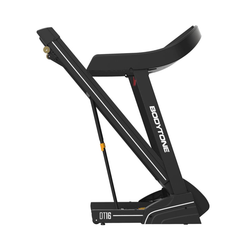 The DT16+ treadmill is the perfect choice for cardio training at home. It offers comfortable cushioning thanks to REACT technology, speeds up to 16 km/h, and 15 automatic incline levels. It is compatible with popular training apps.