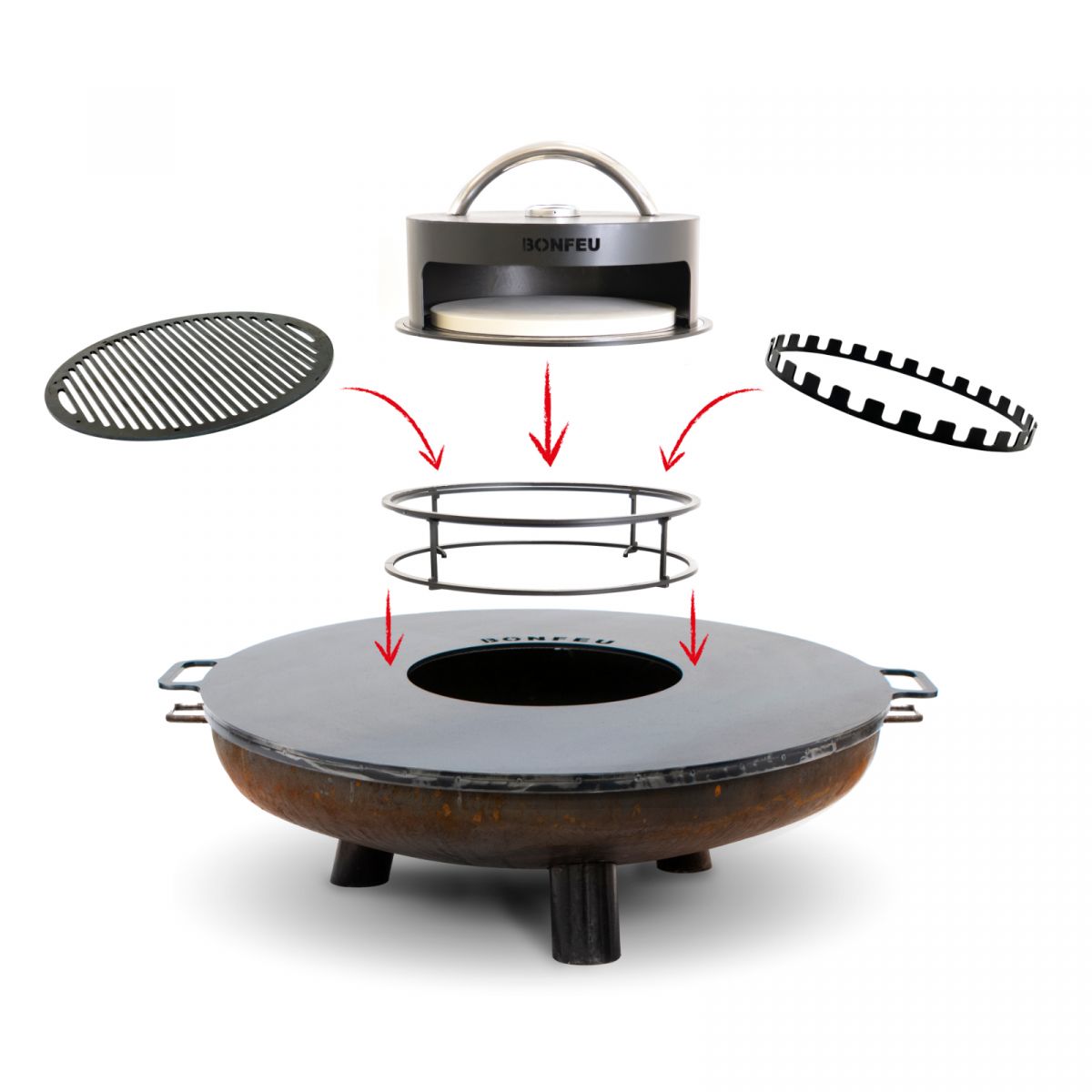 - The BonBowl Plus garden fire bowl by BonFeu is a high-quality product that guarantees you'll be able to enjoy the warmth of a campfire for years to come in your garden or even on your patio. Equipped with comfortable legs and handles, the fire bowl is easy to move and set up on any surface.