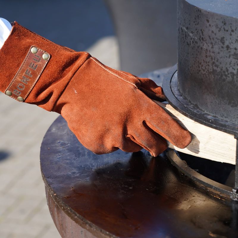 BonFeu 's BonGloves are a must-have for any outdoor cooking enthusiast. Crafted from high-quality light brown suede, these gloves combine excellent functionality with a stylish look. Heat-resistant up to 500°C, BonGloves provide reliable protection for all cooking tasks on BonFeu appliances, such as the BonBiza, as well as accessories like planchas and grills.