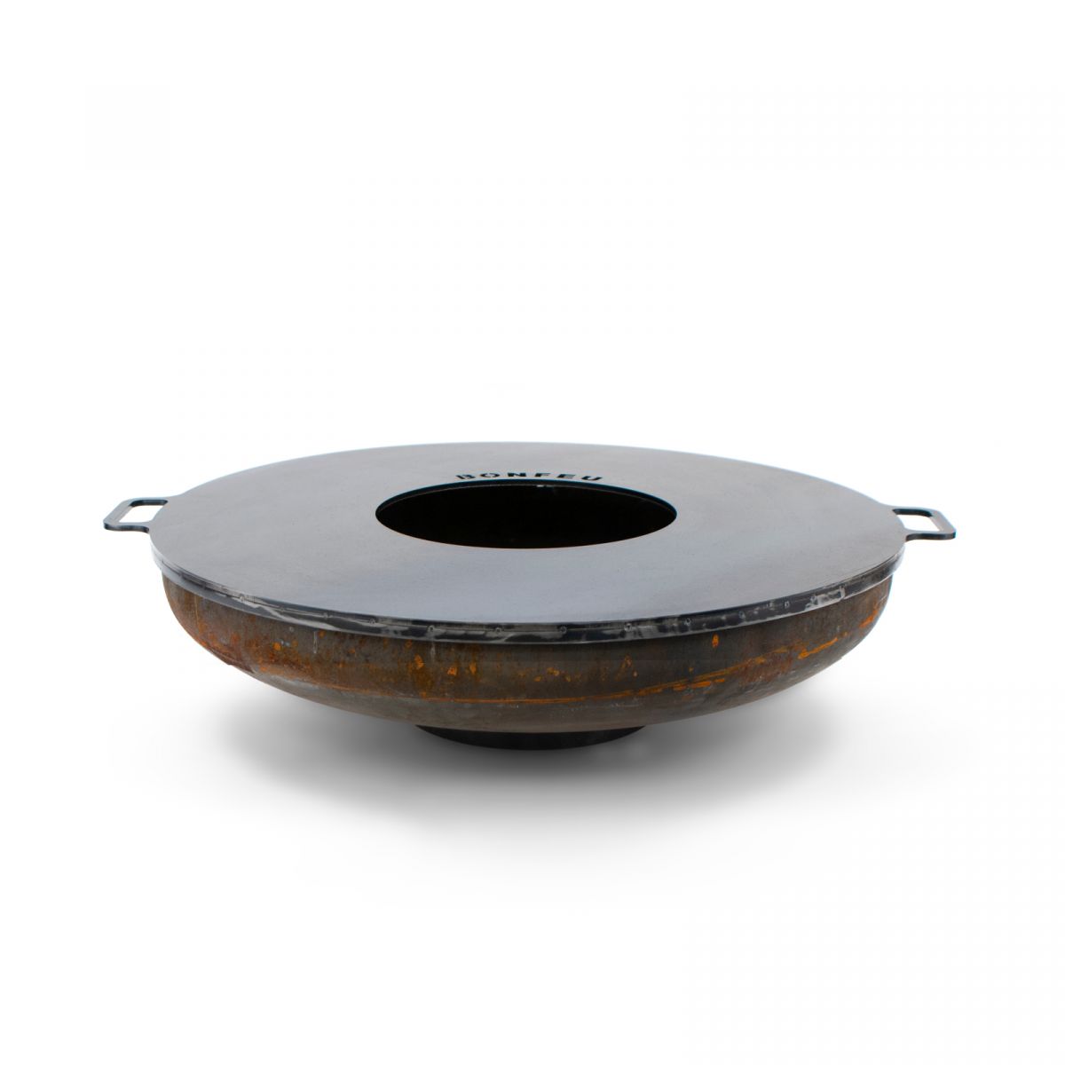 The BonFeu BonPlancha is designed for a unique grilling experience. Available in four sizes (Ø 60 cm, Ø 80 cm, Ø 100 cm, Ø 120 cm), the full-circle BonPlancha offers versatility and convenience that will satisfy every outdoor cooking enthusiast. Constructed from steel, it ensures durability and solidity, while its elegant design adds charm to any garden or patio.