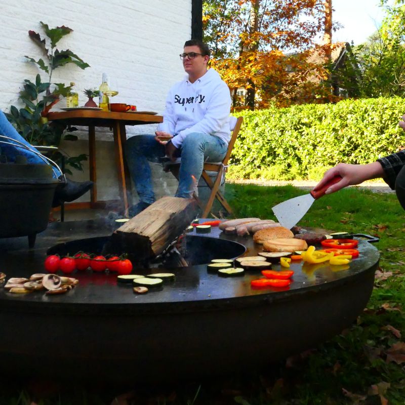 The BonFeu BonPlancha is designed for a unique grilling experience. Available in four sizes (Ø 60 cm, Ø 80 cm, Ø 100 cm, Ø 120 cm), the full-circle BonPlancha offers versatility and convenience that will satisfy every outdoor cooking enthusiast. Constructed from steel, it ensures durability and solidity, while its elegant design adds charm to any garden or patio.