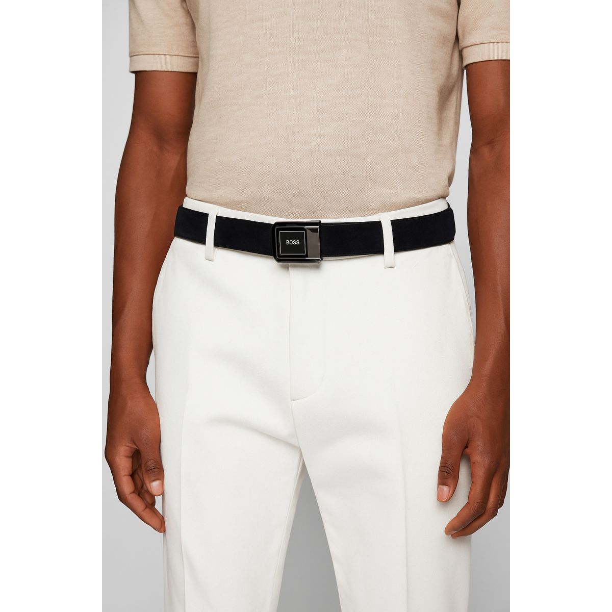 - Metal buckle with BOSS logo – a classic, silver buckle with a matte finish and engraved brand logo adds prestige to the overall look.