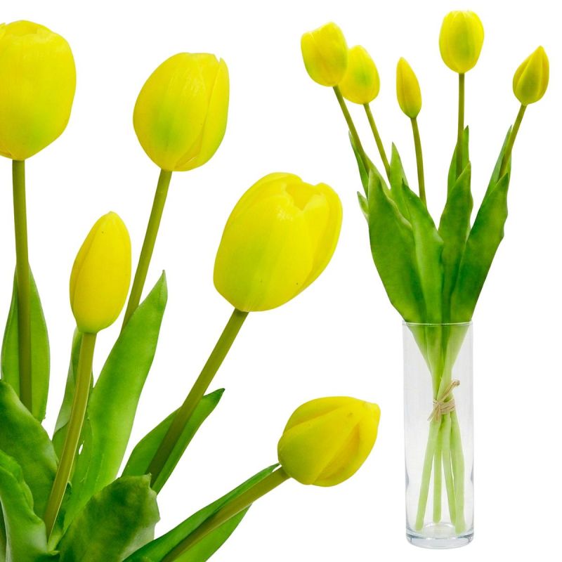 BOUQUET OF 5 YELLOW TULIPS 39 CM LIKE LIFE SPRING DECORATION