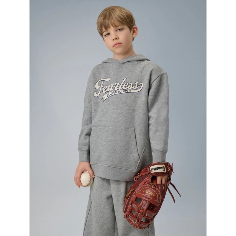 The integrated, non-adjustable hood helps protect against the cold, while the loose fit allows for complete freedom of movement and allows for unrestricted movement during activity. The standard hip-length cut ensures a comfortable fit, while open pockets allow for convenient storage of small items or keeping hands warm. Among 4F's children's collections, this is a convenient option for children who need a comfortable sweatshirt for every day.