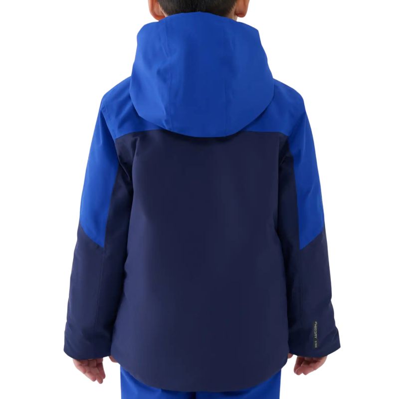 Boy's ski jacket 4F M0821 navy blue 4FJWAW25TTJAM0821 31S Boy's ski jacket 4F is a style that works well during winter, moderate activities and everyday use. Main material: 100% polyester Lining: 100% polyester Filling: polyester insulation, 100% polyester Membrane: NeoDry 5000 Waterproofness: 5000 mm H2O Breathability: 3000 g/m2/24h Regular fit comfortably fits the body Standard cut reaching to the hips Hydrophobic coating of the outer material limits moisture absorption Sleeve length adjustment Taped, all seams prevent water penetration at the stitching Integrated hood without adjustment High collar Cuffs with Velcro adjustment 2 side pockets with zippers Ski pass pocket with Velcro One-way main zipper with inner wind flap Hem adjustment with tunnel drawstring with stoppers Integrated powder skirt · Pre-shaped elbows · Reflective elements · Polyester insulation ensures optimal thermal comfort · NeoDry 5000/3000 membrane protects against light rain or snow