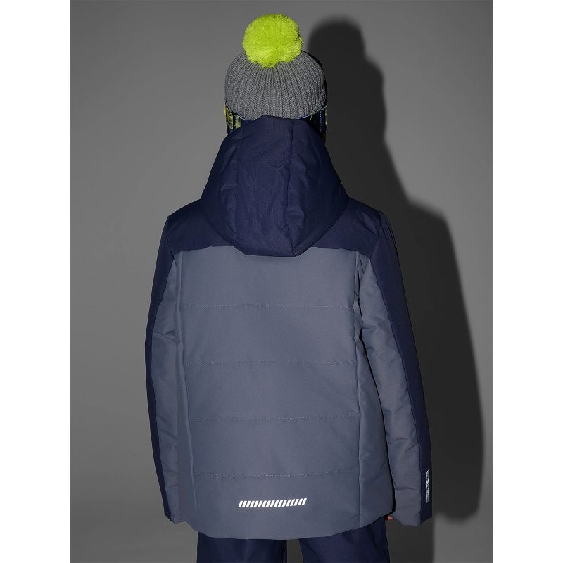 This boys' ski jacket with a NeoDry 5000/3000 membrane was created for active children who need warmth, protection, and complete freedom of movement on the slopes. It effectively protects against moisture, snow, and wind, while also promoting breathability during intense skiing. Lightweight polyester insulation, practical snow guards, and the Grow-Up System , which allows the jacket to "grow" with the child, make it a functional and comfortable choice for more than one winter season.