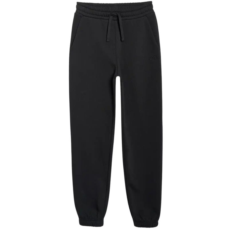 Boys' trousers 4F CAS M1510 deep black 4FJWMM00TTROM1510 20S Boys' trousers 4F are perfect for everyday use. Technical data: Main material: 80% cotton, 20% polyester Additional material: 100% cotton Standard cut fits naturally on the body and provides freedom of movement Legs with elastic cuffs Made of 80% cotton, making them soft, durable, and pleasant to the touch The addition of polyester (20%) makes the material durable and resistant to wear for many seasons Uniform colors match many styles 2 open side pockets Waistband with external drawstring adjustment