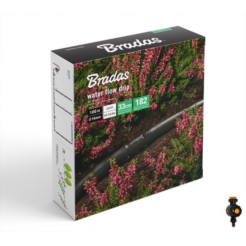 BRADAS WATER FLOW DRIP HOSE SET 100m WITH WATER FLOW TIMER