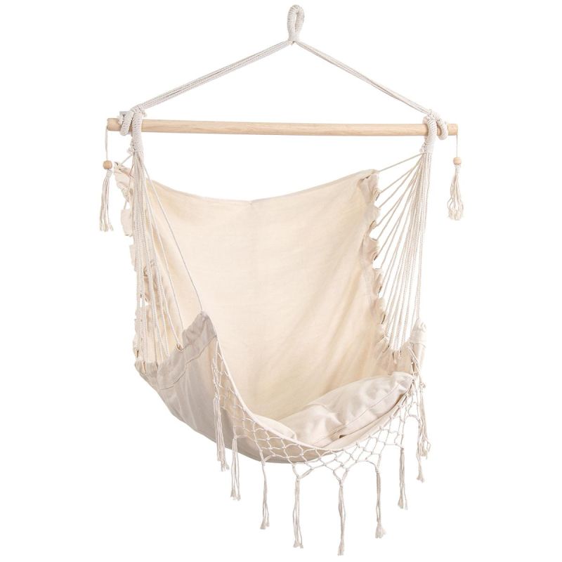 BRAZILIAN HAMMOCK CHAIR MIAMI WITH FRINGE 130X100CM + 2 PILLOWS 40X40CM BEIGE