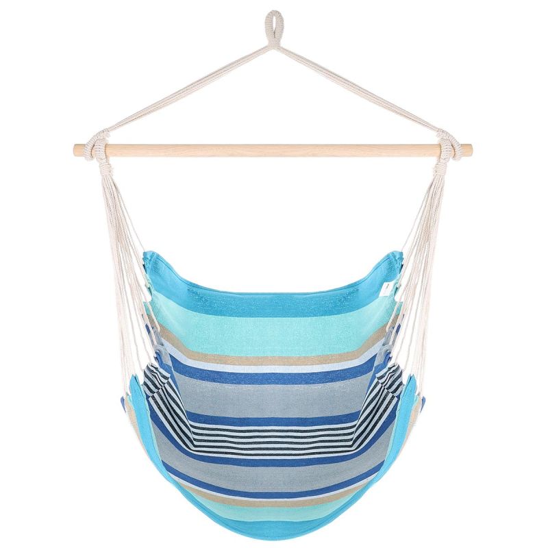 The BRAZILIAN HANGING CHAIR HAMMOCK is the perfect choice for a lazy summer afternoon in the garden and beyond. You can also use it at home on your terrace or balcony. Simply install the appropriate hook, attach the hammock, and begin relaxing. High-quality materials and a robust construction with a load capacity of up to 100 kg will ensure your safety and exceptional comfort. Relax to the fullest in the COMFORTABLE and STABLE BRAZILIAN HANGING CHAIR HAMMOCK. Transform a corner of your garden or terrace into an oasis of peace and quiet. With this hammock, relaxing outdoors and beyond is pure pleasure!