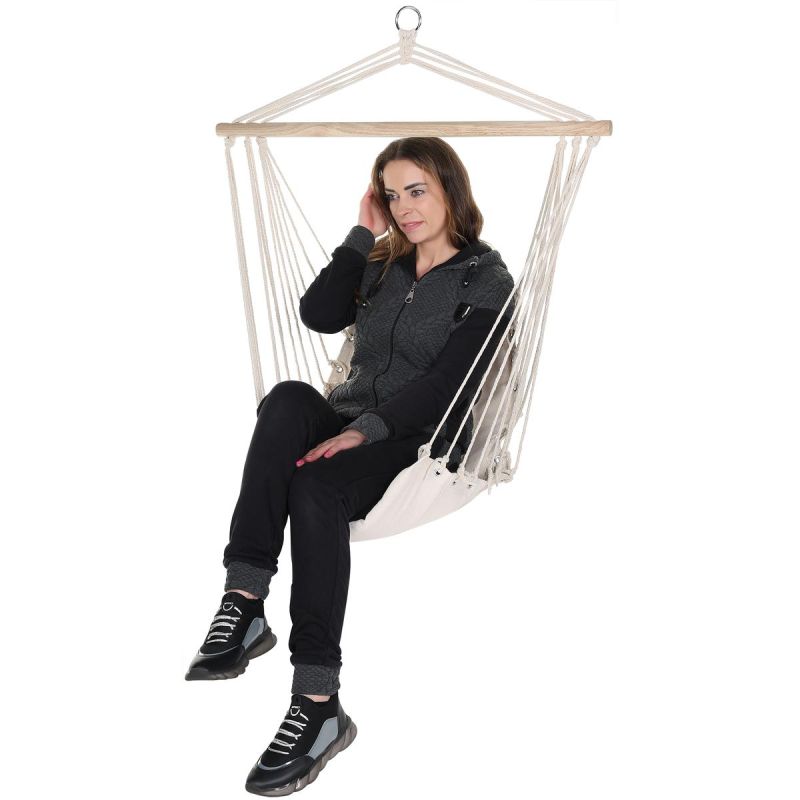 BRAZILIAN HAMMOCK HANGING CHAIR 100x50CM NATURA WITH SEWN-IN CUSHION is a perfect choice for a lazy summer afternoon in the garden and beyond, you can also use it at home on the terrace or balcony.