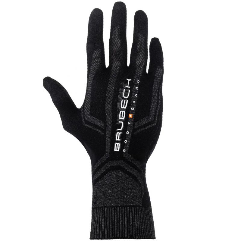 Brubeck Universal Thermoactive Gloves, Black and Gray GE10010A. Brubeck's ultra-thin thermoactive gloves are a favorite of both women and men. They can be worn alone or as an additional layer under thicker gloves. The two-layer, seamless fabric is breathable, anti-static, anti-irritant, and odor-resistant. The inner layer wicks excess moisture away from the skin, leaving a pleasant feeling of freshness. The thumb and index finger are covered with a special mesh, allowing you to operate most touchscreens without removing the gloves. Long cuff. Material: 42% polyamide, 40% polypropylene, 18% elastane